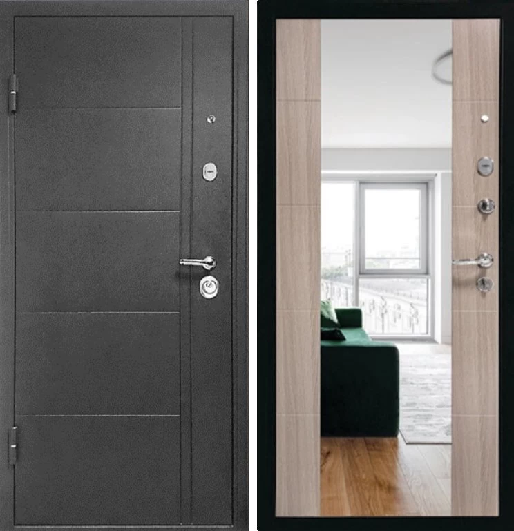Надежная входная Дверь Эверест Зеркало Сандал Серый премиум класса по цене 33 359 руб. Большая толщина стали защитит от проникновения в ваш дом, квартиру или коттедж. Используется очень качественная фурнитура: замки, цилиндры, ручки, защелки. Покрытие и отделка двери изготовлено под внимательным контролем производителя. Дверь имеет долгий срок службы и гарантию.