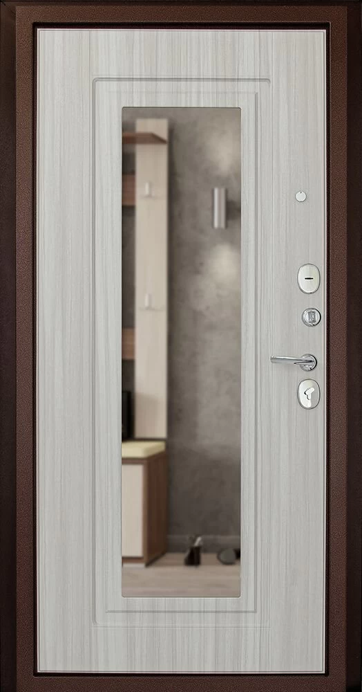 Надежная входная Дверь ДК Рубикон зеркало премиум класса по цене 31 929 руб. Большая толщина стали защитит от проникновения в ваш дом, квартиру или коттедж. Используется очень качественная фурнитура: замки, цилиндры, ручки, защелки. Покрытие и отделка двери изготовлено под внимательным контролем производителя. Дверь имеет долгий срок службы и гарантию.