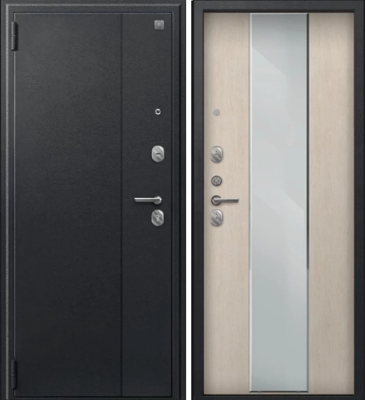 Надежная входная Дверь A-04 черный сатин - седой дуб зеркало премиум класса по цене 33 679 руб. Большая толщина стали защитит от проникновения в ваш дом, квартиру или коттедж. Используется очень качественная фурнитура: замки, цилиндры, ручки, защелки. Покрытие и отделка двери изготовлено под внимательным контролем производителя. Дверь имеет долгий срок службы и гарантию.
